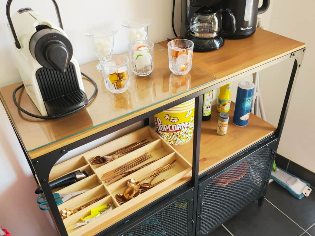 Baby high chair, Coffee machine, Cooking utensils, Kitchen stove, Microwave, Refrigerator, Toaster, Vacuum cleaner