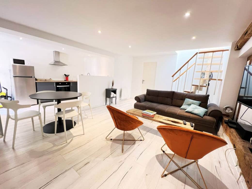 En immersion totale dans l'atmosphère unique de Chartres. A quelques pas seulement de l'impressionnante cathédrale, prête à être explorée à tout moment. Cet appartement de deux chambres vous accueille avec tout le confort nécessaire, incluant une salle de douches avec WC, une cuisine ouverte aménagée et équipée, un salon confortable, et un espace repas. En couple, en famille ou entre amis, notre appartement est le point de départ idéal pour découvrir Chartres.